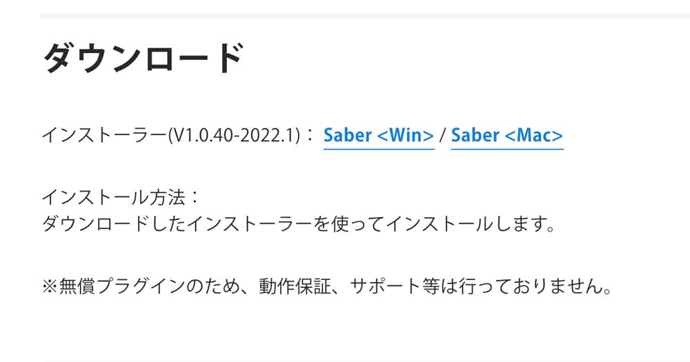 「Saber」のページでダウンロードをクリックします。