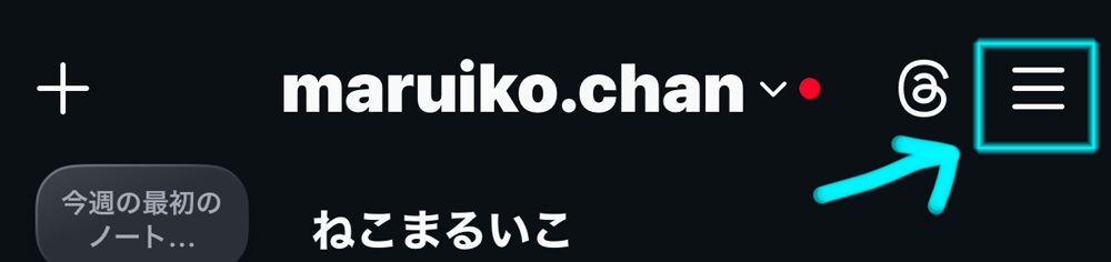 プロフィール画面から「≡」をタップして、設定とアクティビティ画面を開きます。